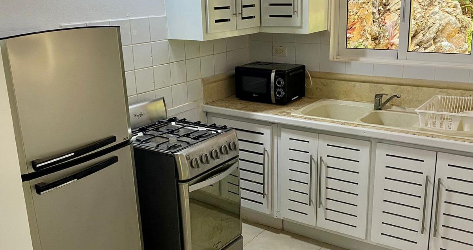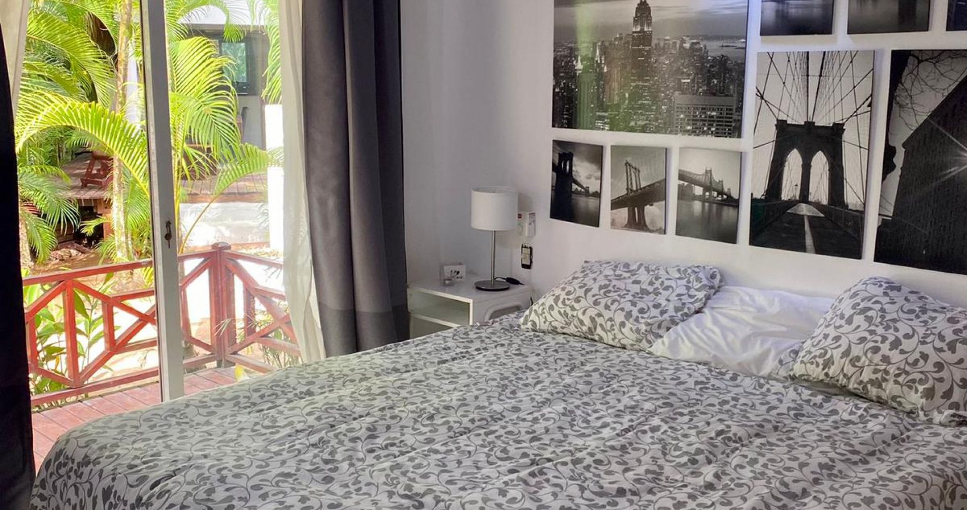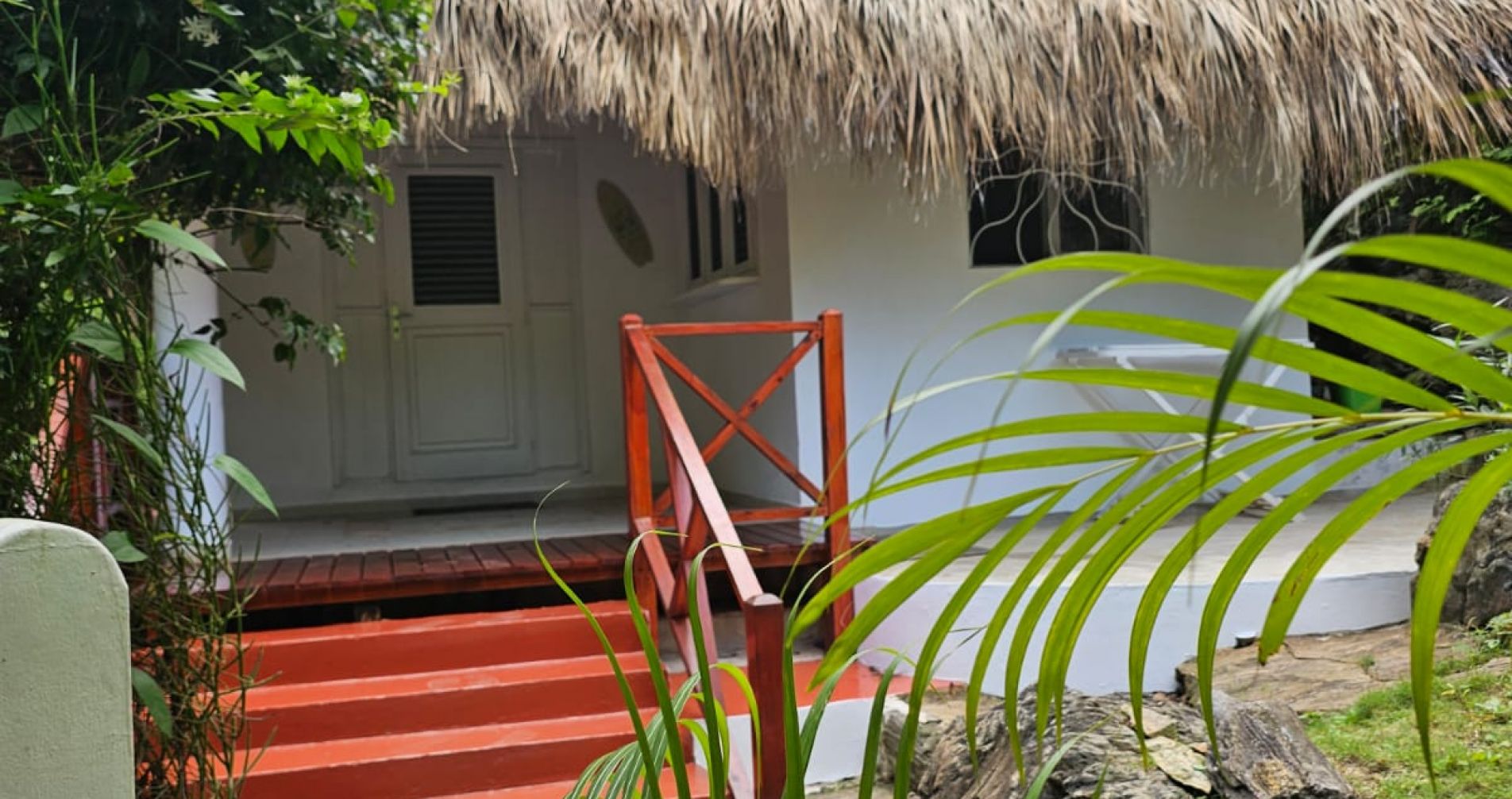 Chalet Tropical, 1 chambre + salon convertible, 1 sdb, 1 cuisine, 1 salon, grande terrasse, grande piscine commune, jardin tropical.