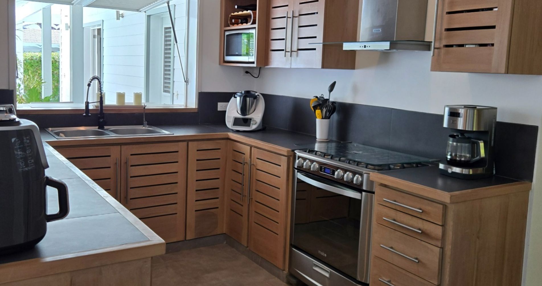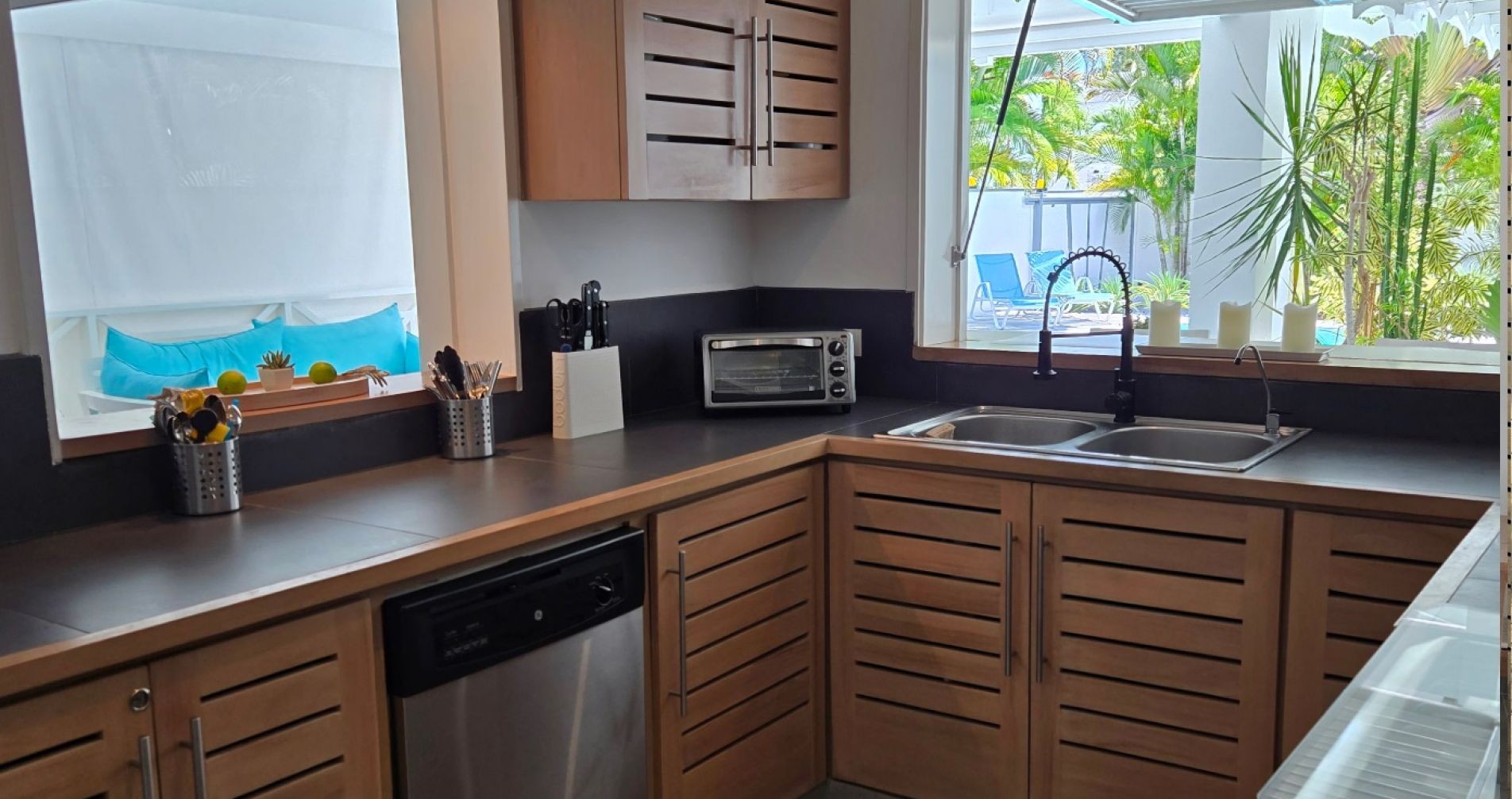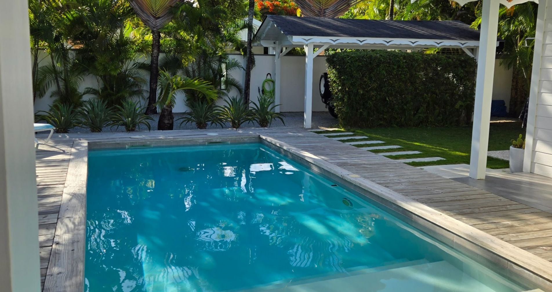Fabuleuse, villa de construction comme neuve, à quelques minutes de la plage. Jamais utilisé comme une AirBnb/location. Propriétaires d’origine. Utilisé uniquement pour les vacances. Bien pris en charge, propriété non-fumeur. Taille du lot env. 447,50, construction du bâtiment de 174 mètres, 45 mètres de terrasse Entièrement meublé – mobilier intérieur et extérieur. Décoré avec goût. État prêt à emménager ! Se présente comme une maison modèle. 3 grandes chambres / 3 salles de bains attenantes avec douches à l’italienne et niches encastrées 1 toilette WC d’invité dans le couloir Plafonds de cathédrale partout à l’intérieur Abri de voiture couvert pour votre voiture et VTT Climatisation et ventilateur de plafond dans chaque chambre et autres pièces Placards encastrés Equipement avec 7 panneaux solaires Réservoir de chauffe-eau de 53 gallons avec panneau solaire séparé Onduleur inverseur électrique avec 4 batteries Appareils de cuisine en acier inoxydable; réfrigérateur, lave-vaisselle, cuisinière, micro-ondes Bar du petit-déjeuner sur la terrasse – Entrée du salon avec portes coulissantes Buanderie comprend lave-linge électrique et sèche-linge a gaz propane Terrasse avec parasols et ventilateurs de plafond Salle de stockage des équipements de piscine Système d’alarme Portail automatique avec télécommandes et clavier extérieur Douche extérieure, volets anticyclone Caméras de vidéosurveillance et obturateur automatique en cas d’ouragan Nouvelle composition de toit en tuiles